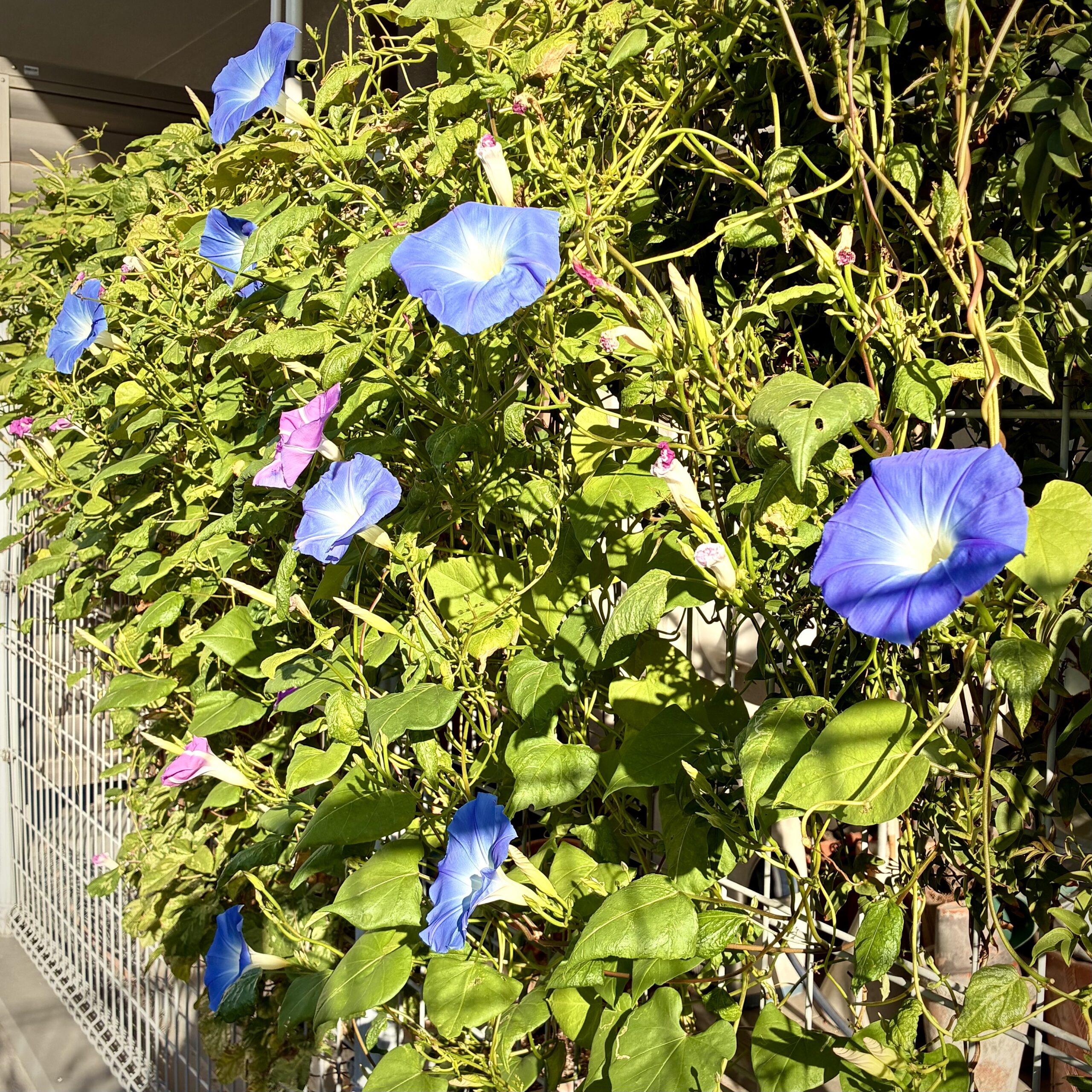 それに、庭仕事がはかどるこの時期は、あさがおの手入れもしやすいんです。つるが絡まりすぎていたら軽くほどいてあげたり、枯れた葉を取り除いたり。そういう作業も、暑さに悩まされない今なら、気持ちよくできるんですよね。ついでに他の植物の様子も見て回ったりして、気づけば3時間くらい庭にいることもあります。