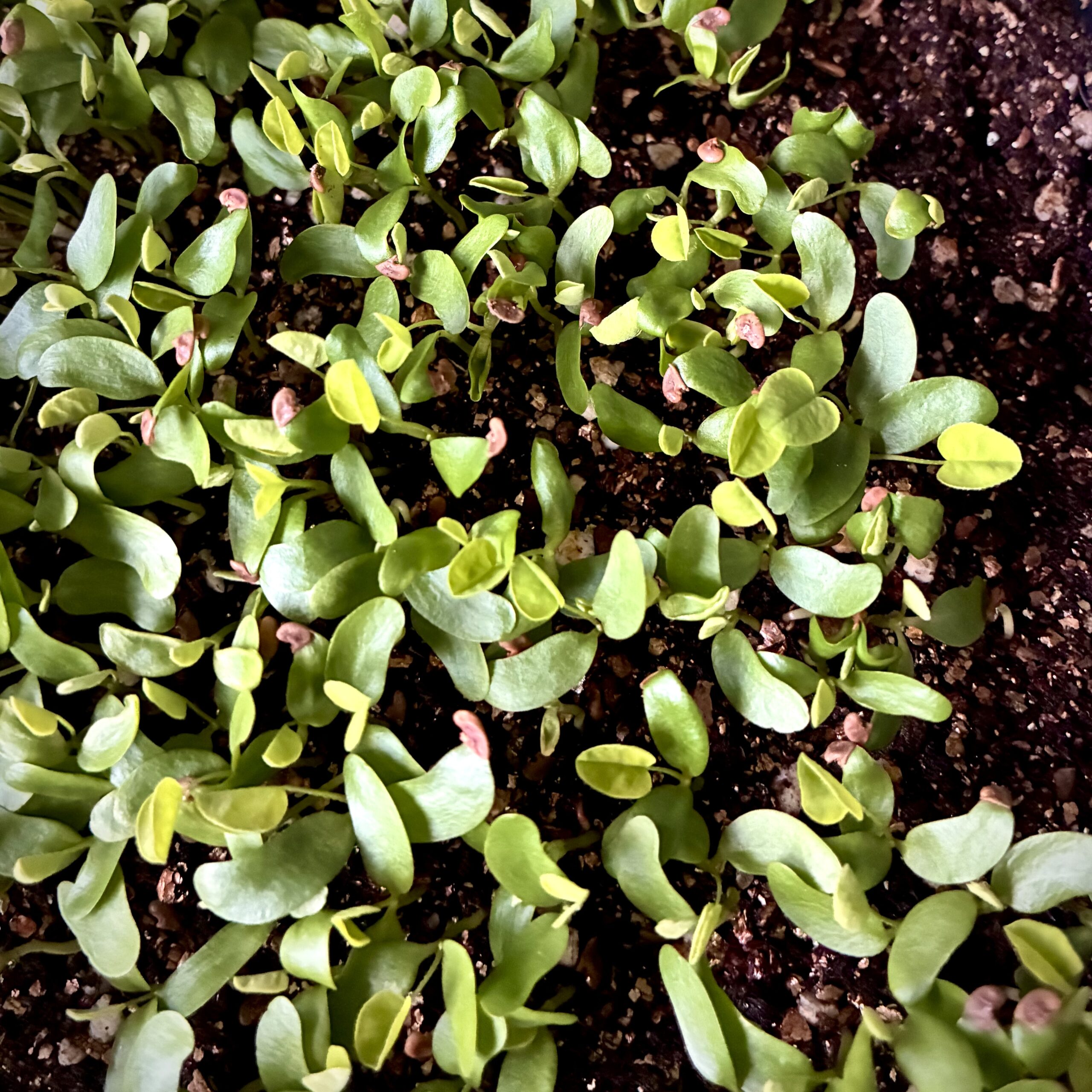 数日後、まずは双葉が顔を出した。小さくて丸っこい葉っぱが土の間からちょこんと出てきたときは、思わず「おおっ」と声が出た。発芽率はなかなか良くて、蒔いた種のほとんどが芽を出してくれた。双葉の時点ではまだレンゲっぽさはなくて、どちらかというとクローバーのような雰囲気。でも、これがちゃんと育っていくのかと思うと、毎朝の観察が楽しみになってきた。