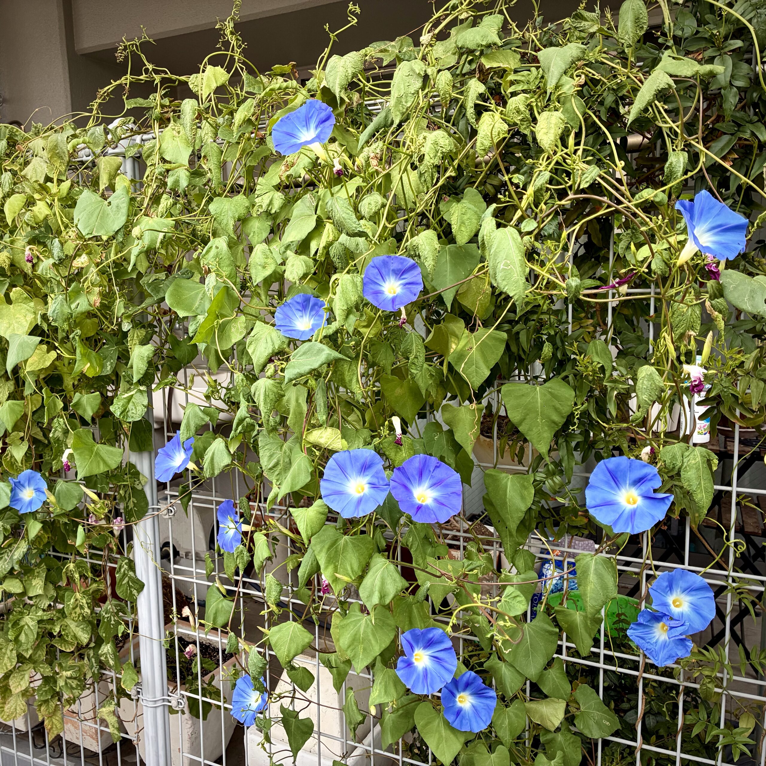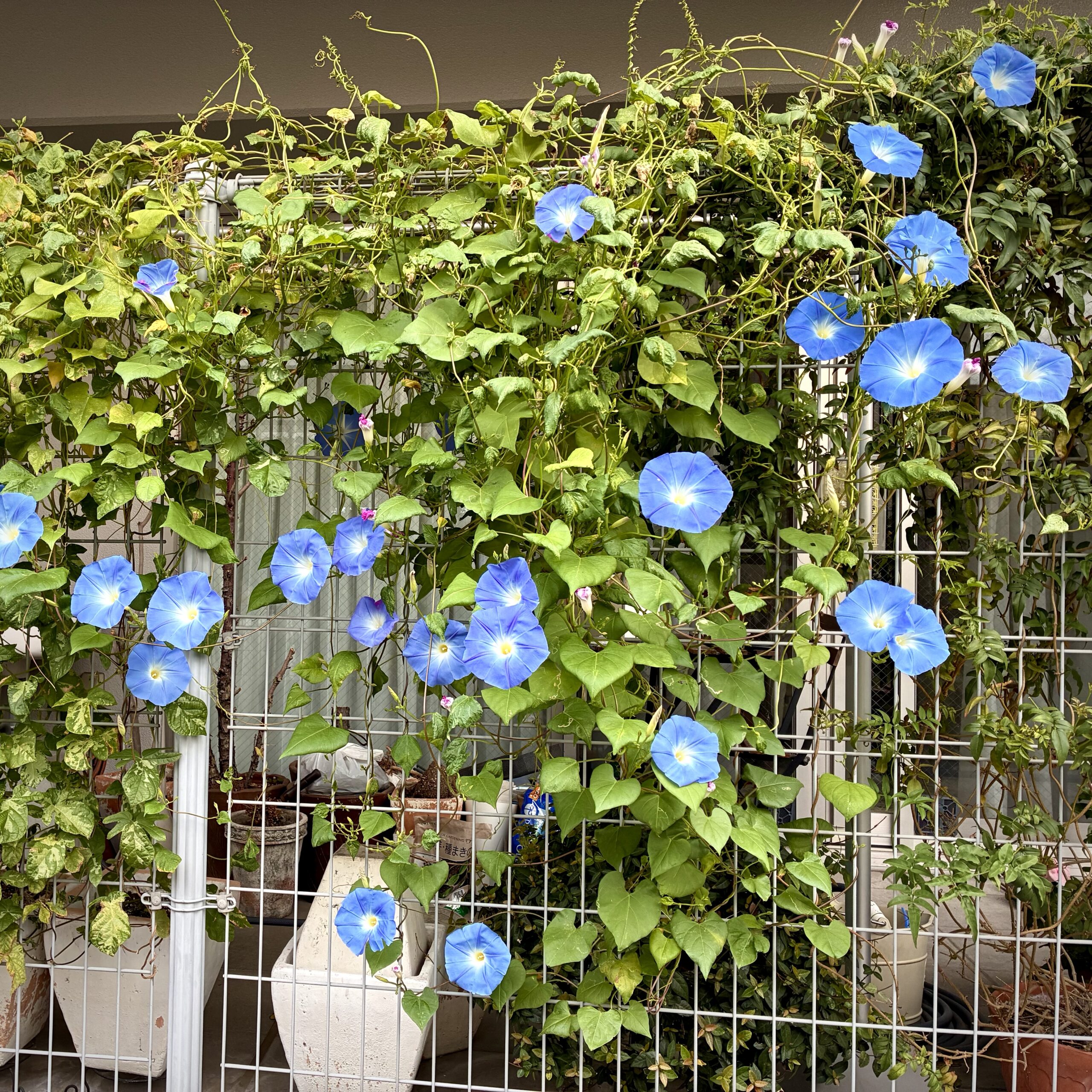 今年の夏、いや、秋かな。わたしのベランダはまるで小さな楽園のようになった。というのも、育てていたあさがおの「カレドニアブルー」が、なんと30輪以上も一斉に咲いたのだ。朝起きてカーテンを開けた瞬間、目に
